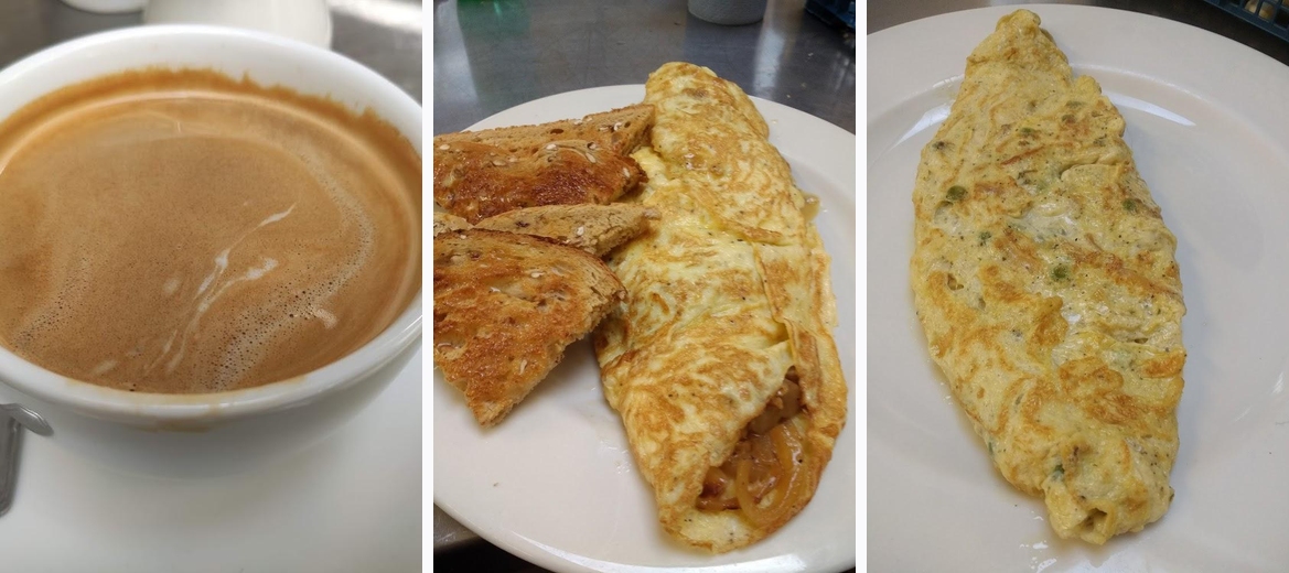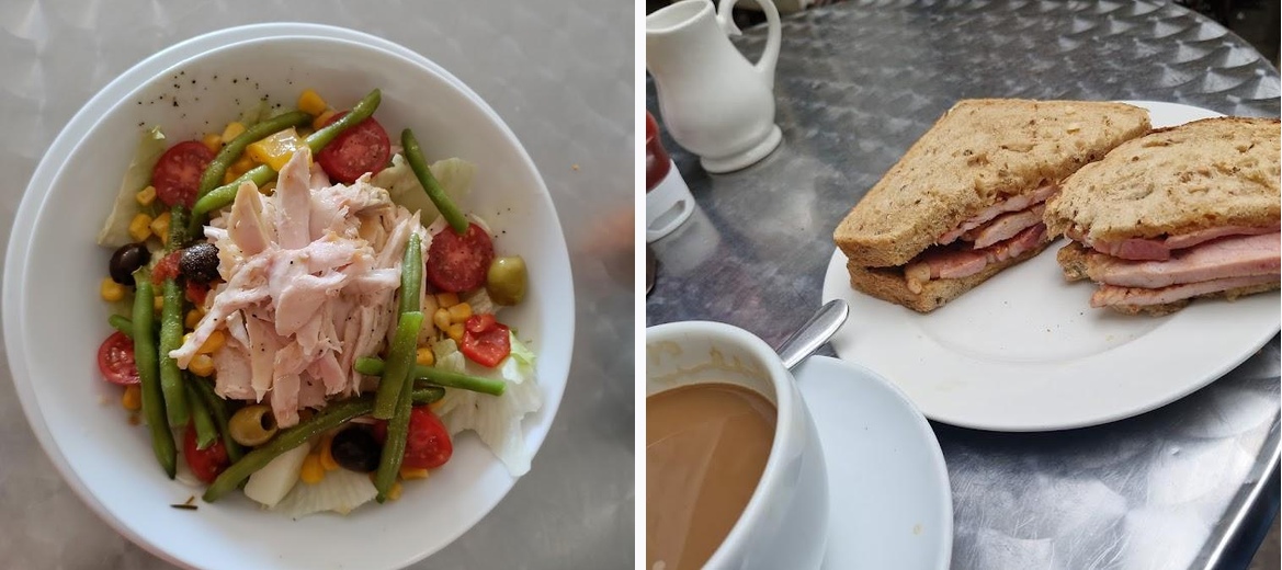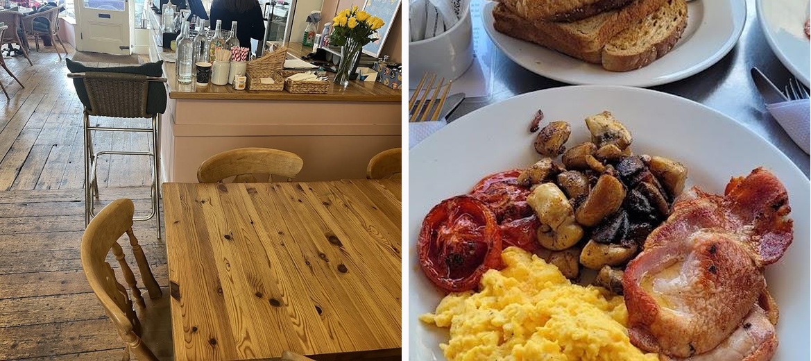We had excellent breakfasts here today. The omelette I had was packed with cheese & ham with 2 slices of thick sliced bread. Hubby had a bacon & egg baguette. Hearty portions of both. Very good value for money. The cappuccinos were lovely, the service was warm and friendly. No wonder there was a steady flow of customers on a cold and misty morning. Happy to highly recommend.